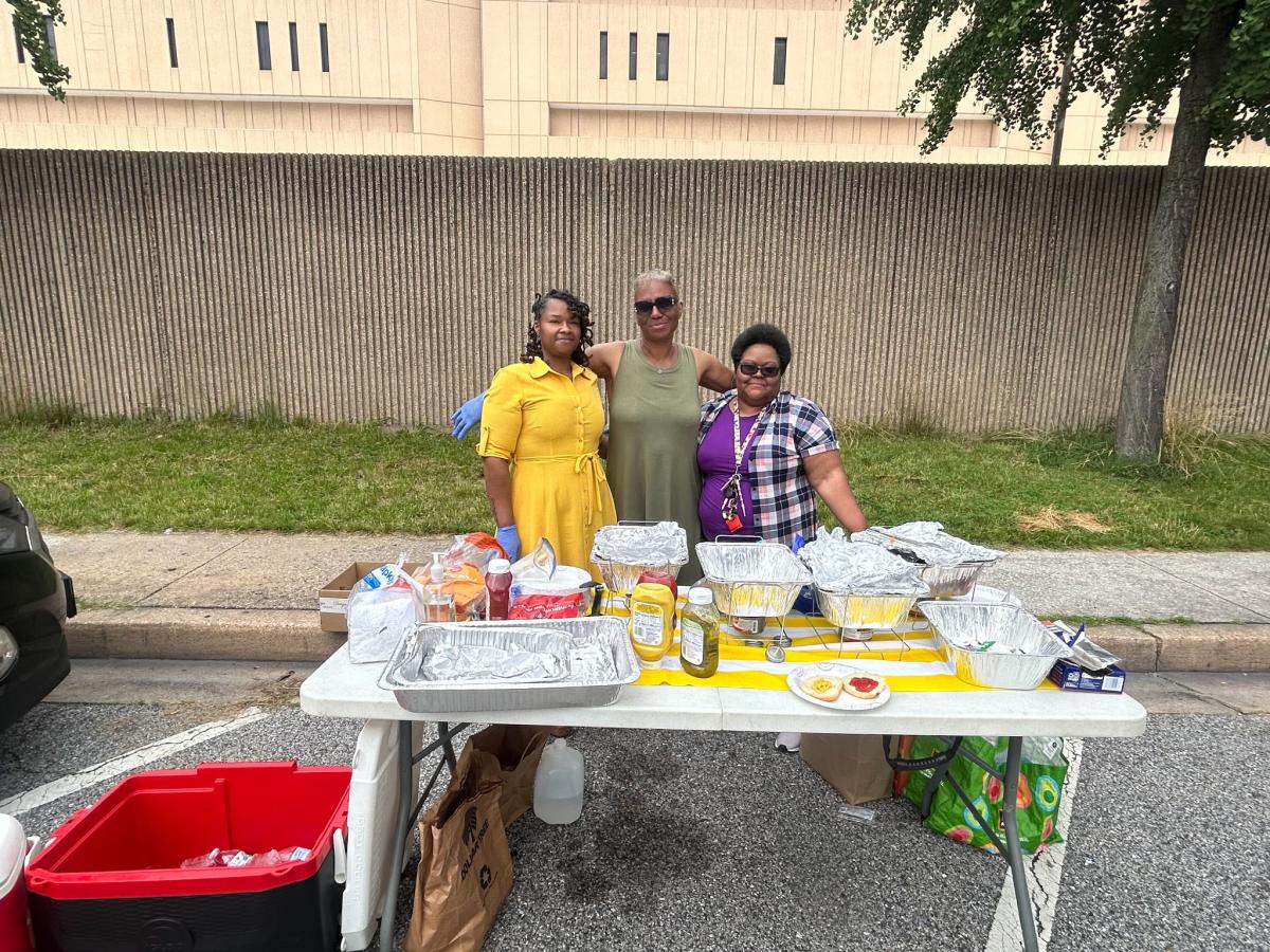 During the COVID-19 pandemic, Stevens (pictured right, at an event that distributed food to the community), a nurse, was working in care coordination. She met Robin, an older patient, via a telehealth call, who was often accompanied by Rebecca Cook, who helped advocate for Robin. Both were members of Allegheny East Conference’s United in Christ church in Baltimore. For weeks, the three women communicated on the phone.